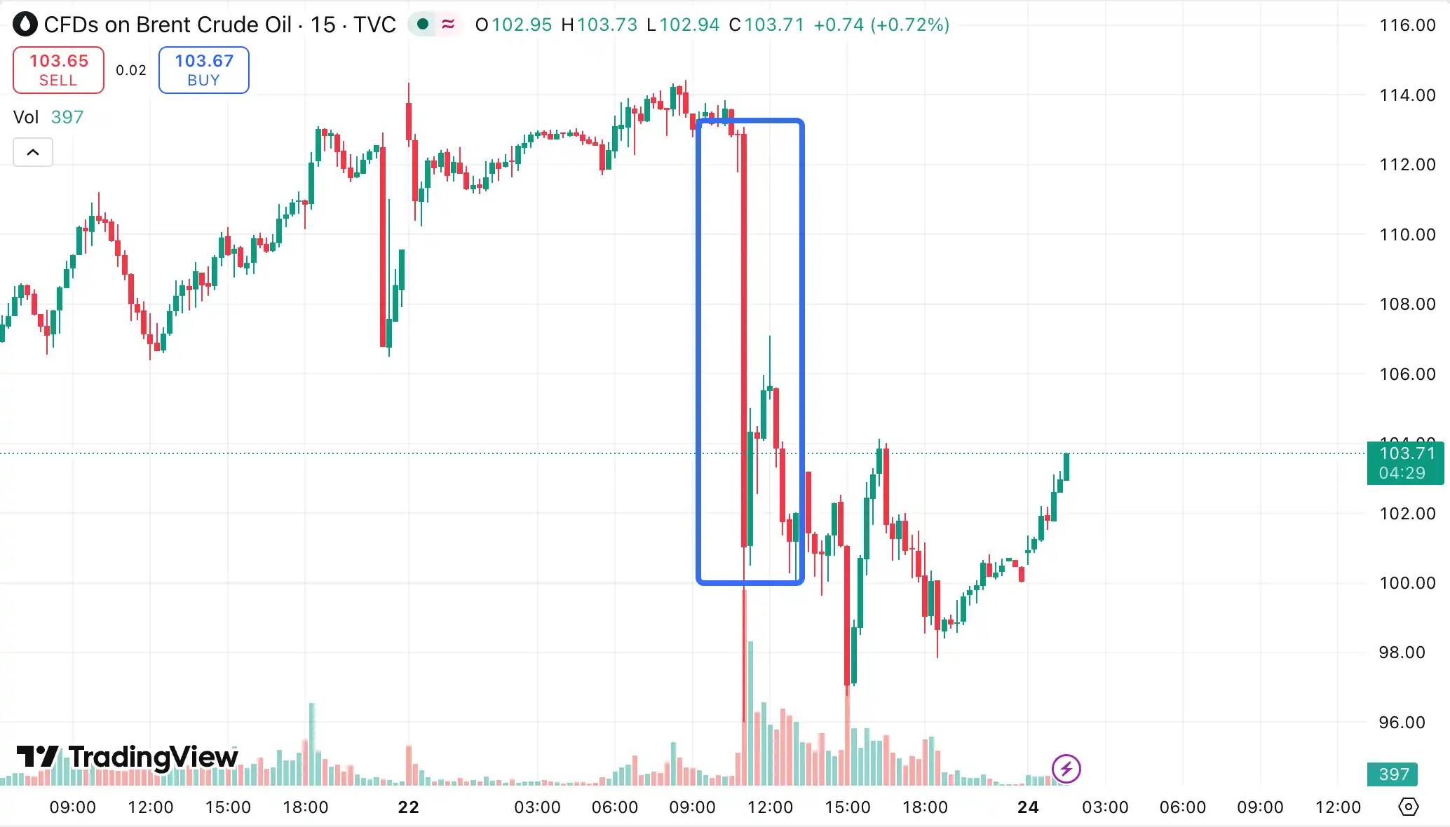 几分钟之内,道琼斯期货涨了超过 1000 点,标普 500 期货涨了 2.7%。布伦特原油从每桶 113 美元直线跌到了 98 美元,跌幅超过 13%。
