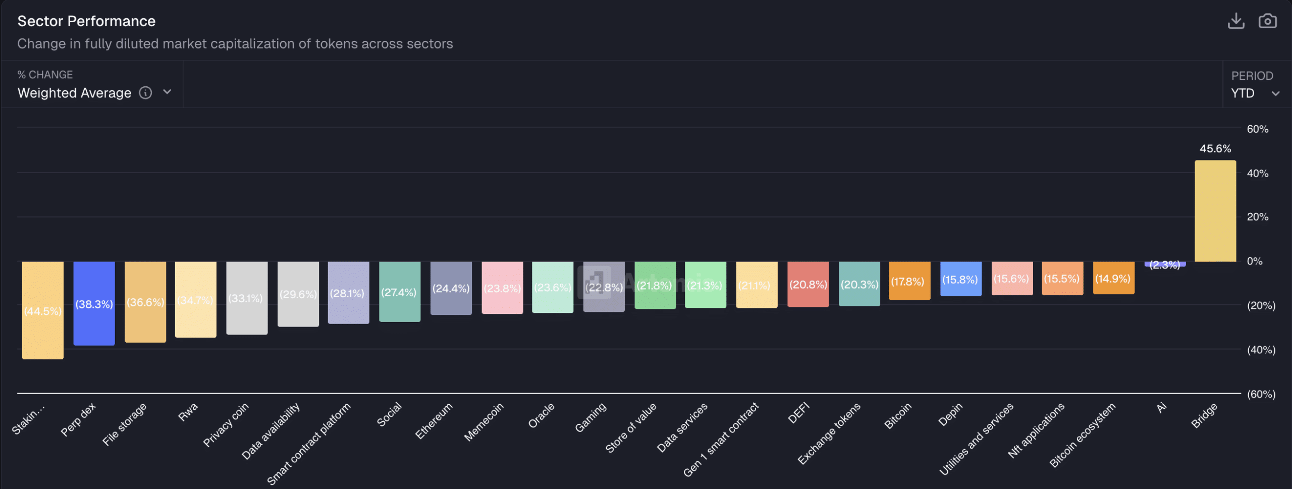 这一转变助推了其表现。当多数板块年内深度下跌时,RWA保持了相对稳健的态势。