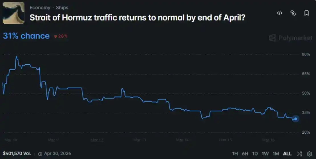 我把它对准了一个正在进行的 Polymarket 市场问题:到 2026 年 4 月底,霍尔木兹海峡的海上运输是否会恢复正常?