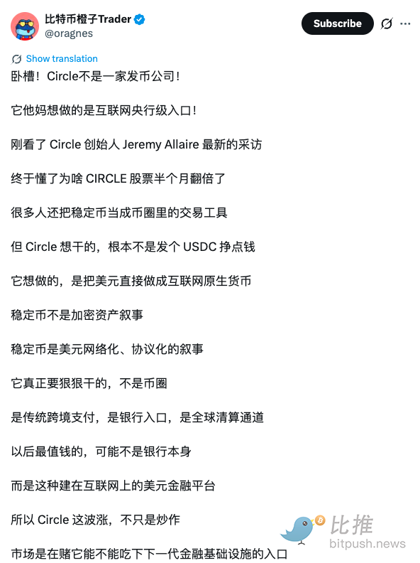 稳定币早已不属于加密货币圈了,circle这个赛道最大竞争对手是stripe。stripe一直就是做这个事情。stripe的布局远比circle全面。
