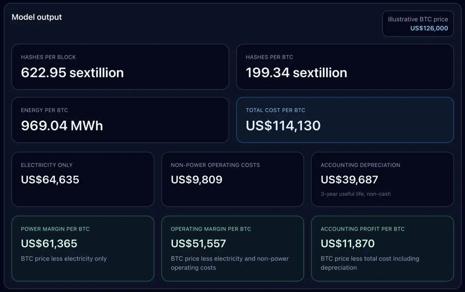 这清楚地表明,对大型美国矿商而言,"挖一枚 BTC 的成本"并没有单一数字。