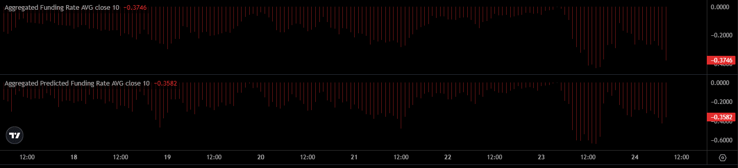 穩定資金費率持續低於預期水平,顯示相對於倉位存在低估情況。