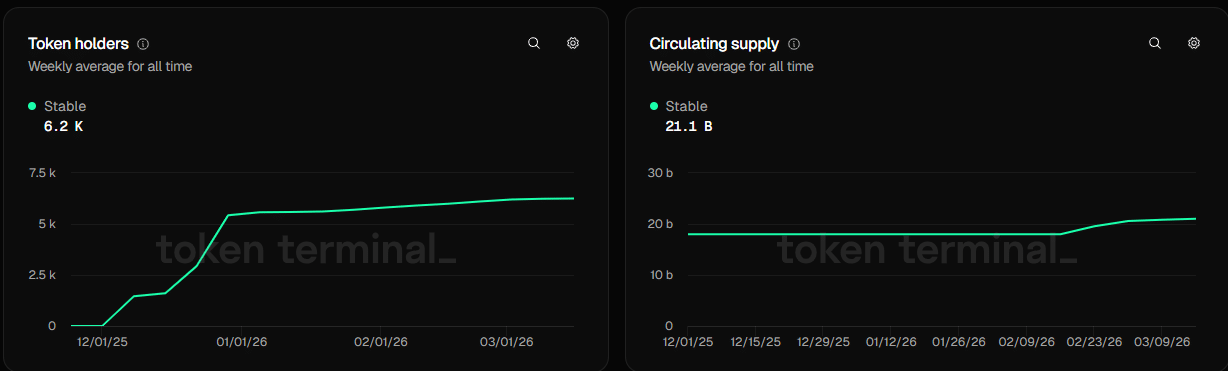 截至發稿時,該網絡共有 6.2k 名持有者,流通供應量達 21.1 億。