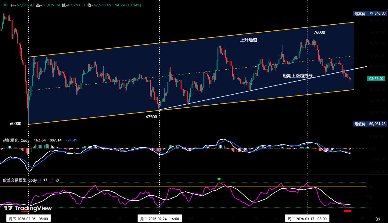 • 第一支撑位:65,000~66,000 美元區域(前期重要支援區域)