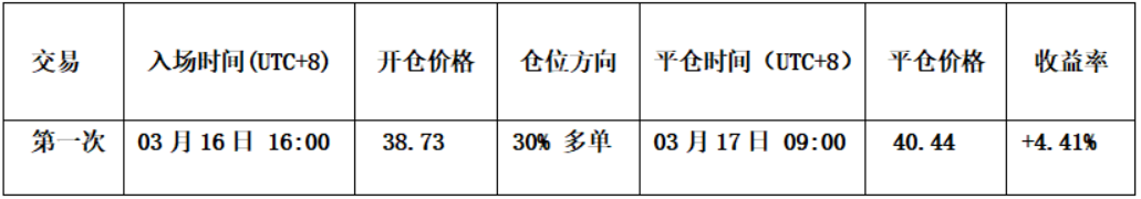 上週,我們根據自建的價差交易模型與動量量化模型所發出的交易訊號,並結合對上漲結構的預判,完成一次短線(多單)操作,成功盈利 4.41%,執行過程嚴格遵循預案。