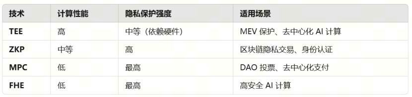 TEE 可以在 MEV 领域提供“去信任排序”和“隐私交易”,减少矿工操控,提升公平性,为 DeFi 用户提供更公平的交易环境。