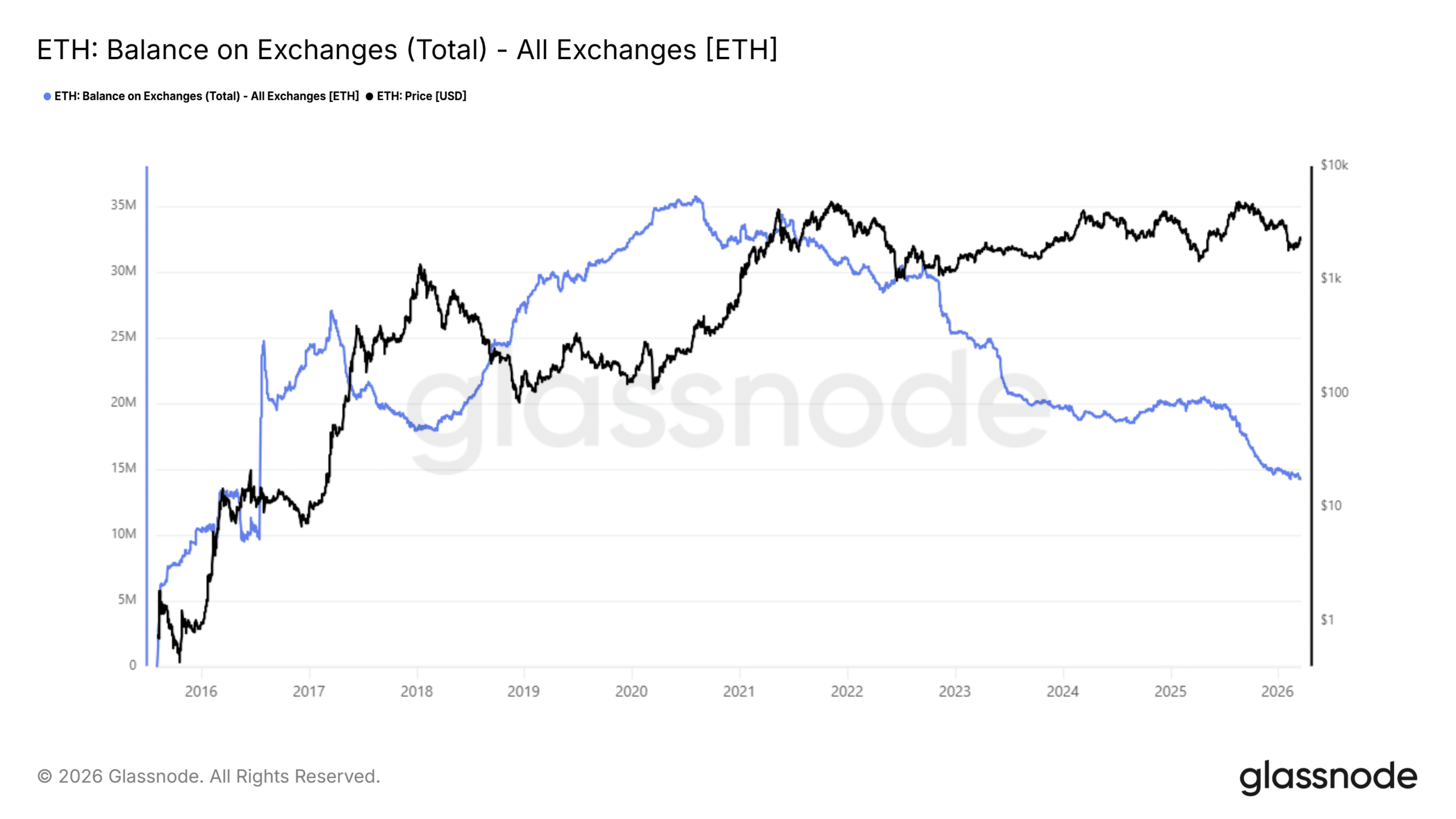 隨著衍生產品趨於穩定且倉位重新調整,鏈上數據開始驗證累積是否具有結構性強度。交易所餘額持續下降,從超過 35 百萬枚 ETH 降至 14 百萬枚 ETH,強化了持續的供應流失。隨著流動供應縮緊,賣方壓力減弱,使需求對價格走勢產生更大影響。