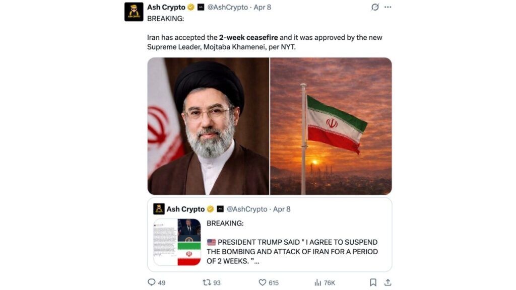 由于中东地区,特别是霍尔木兹海峡(全球石油供应的关键通道)周边地区紧张局势不断升级,市场已持续数周处于紧张状态。当宣布达成为期两周的停火协议时,市场反应立竿见影。油价大幅下跌,缓解了通胀担忧,并消除了加密货币等风险资产面临的主要宏观经济阻力。
