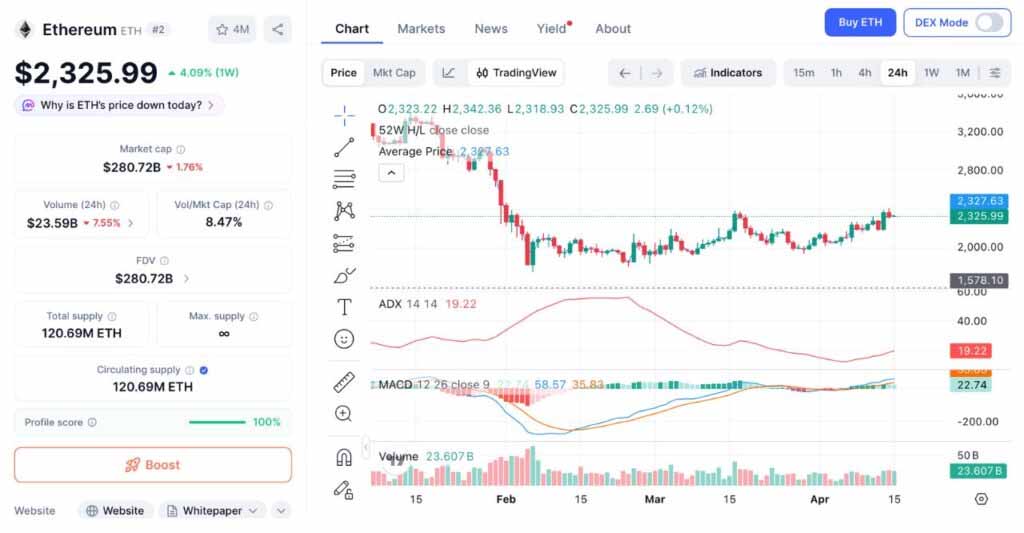 以太坊 1 天价格图表(来源:CoinMarketCap)