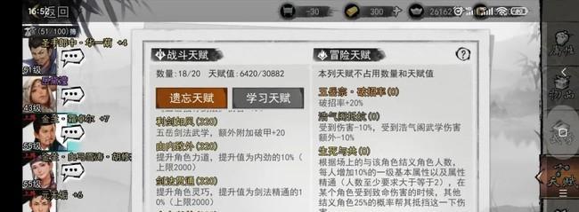 作为一款以武侠世界为背景的RPG游戏,《侠客通天塔》以其独特的玩法和细腻的画面吸引了众多玩家的关注。在游戏中,不同的武学天赋的搭配可以让侠客们在通天塔中更加得心应手,更好地挑战各种难度的层数。在本文中,我们将会给大家介绍一些武学天赋的搭配技巧,帮助大家掌握游戏的攻略方法。