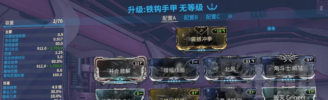 在游戏中,有一些装备和技能可以帮助玩家提高升级效率,例如:武器装备增幅器、战甲技能等。建议将这些装备和技能充分利用,加速升级武器。