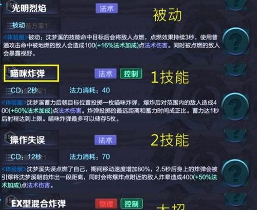 在技能加点方面,可以选择将1技能和3技能进行加点,这样可以提高沈梦溪的单体爆发能力和持续输出能力。同时,2技能也需要进行加点,增加其移动速度和生存能力。