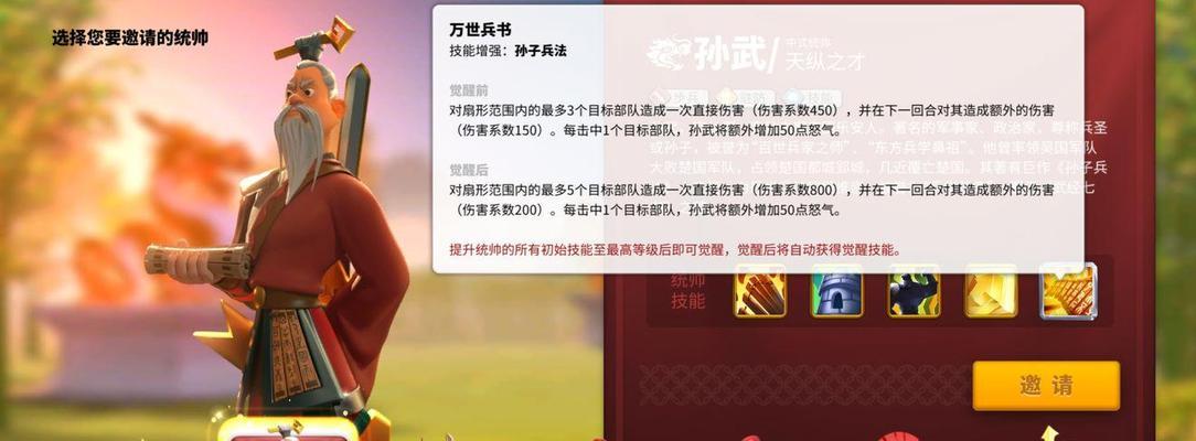 《万国觉醒》是一款备受玩家喜爱的策略类游戏,而孙武作为游戏中的强力指挥官,其技能加点的正确性更是至关重要。本文将详细介绍《万国觉醒》游戏中孙武技能加点的正确方法,帮助广大玩家在游戏中更加得心应手。