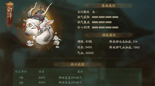 白泽在游戏中具有很高的属性值,例如攻击力、防御力、生命值等。其中攻击力非常突出,因为白泽可以轻松地对敌人造成高额伤害,并在瞬间解决战斗。