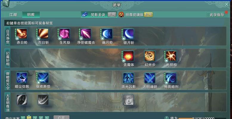 游戏中还存在着各种秘籍,可以为紫薇软剑提供额外的属性。比如说“剑圣之道”可以提升紫薇软剑的命中率和暴击率;“仙魔之怒”则可以让紫薇软剑的攻击力得到大幅度提升。秘籍属性为紫薇软剑的使用提供了更多可能性。