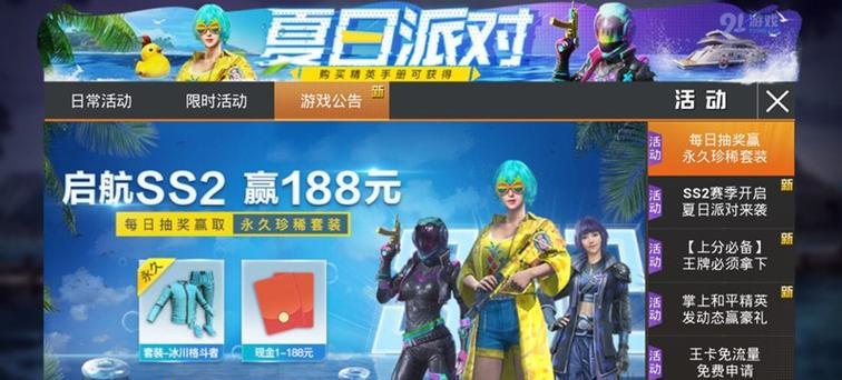 在《和平精英》这款游戏中,我们可以通过各种方式获取不同的套装和道具,其中太空漫步套装是玩家们十分关注的一个套装。它不仅外观炫酷,更重要的是其稀有度非常高,拥有它不仅可以提高玩家的形象气质,更可以展示自己在游戏中的实力和技巧。本文将详细介绍如何获取太空漫步套装,让玩家们轻松拥有。