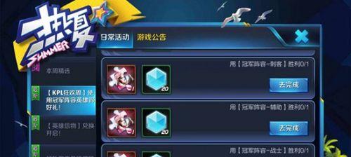 王者荣耀五五英雄约定活动是游戏中非常受欢迎的一项活动,不仅有丰厚的奖励,还能让玩家们感受到不一样的游戏乐趣。然而,由于活动规则复杂,有很多玩家不知道如何参与和获得更多的奖励。本文将为大家详细介绍王者荣耀五五英雄约定全攻略,助您轻松获取丰厚奖励。