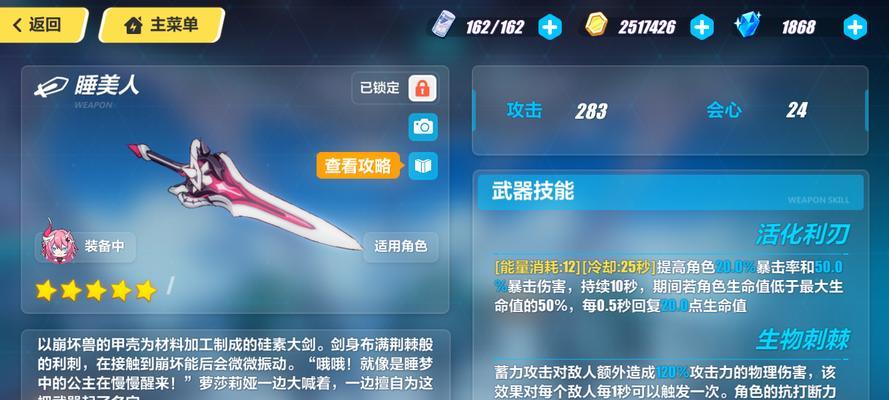 崩坏三睡美人武器技能属性图鉴攻略,掌握最强武器属性,战无不胜!