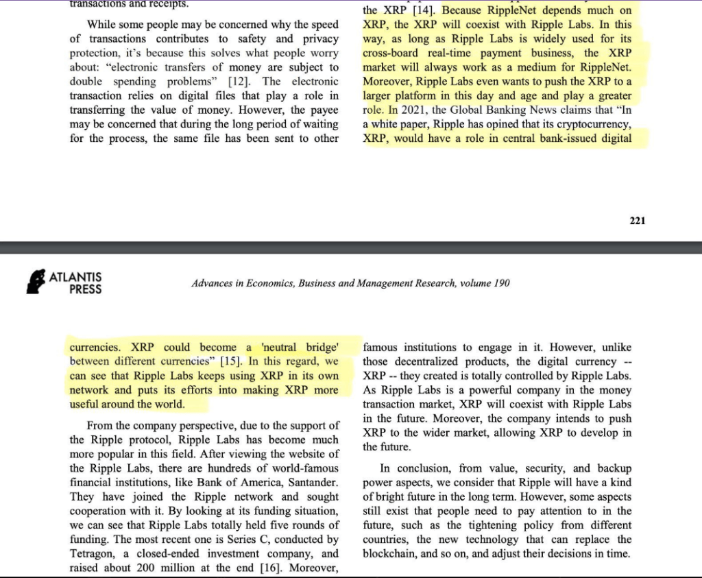 Ripple Payments — 前身為 RippleNet — 使用 XRP 作為橋接資產,以快速且低成本地跨國轉帳。根據該論文,這種依賴關係十分深遠。XRP 有助於防範雙重支付風險,同時減少傳統支付系統常見的延遲。