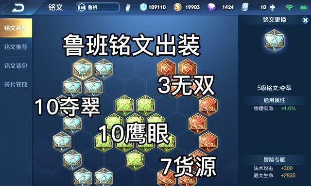 选择适合鲁班的铭文是打造无敌攻击力的关键。首先要选取的铭文是“鹰眼”,它可以提高鲁班的移动速度和攻击速度,使你在战斗中更加灵活且输出更高。
