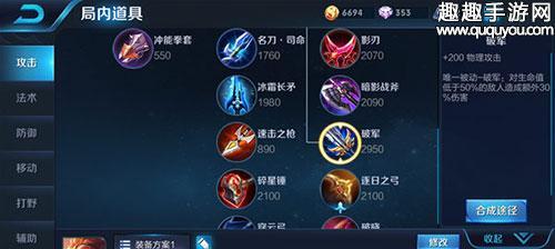 2.必备装备分析:“红莲斗篷”、“破军”、“闪电匕首”