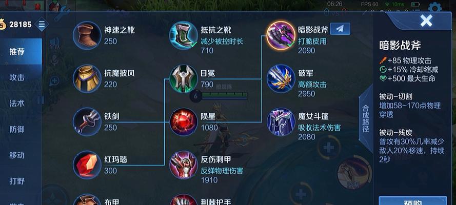 面对法师英雄时,以曜可以选择装备“暗影战斧”来增加对抗法师的能力,该装备能够提供额外的物理攻击和法术抗性。