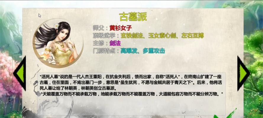 游戏中的宗派系统和门派选择直接关系到玩家在武林中的地位和声望。本将对不同宗派进行介绍,并分析门派选择对游戏进程的影响。