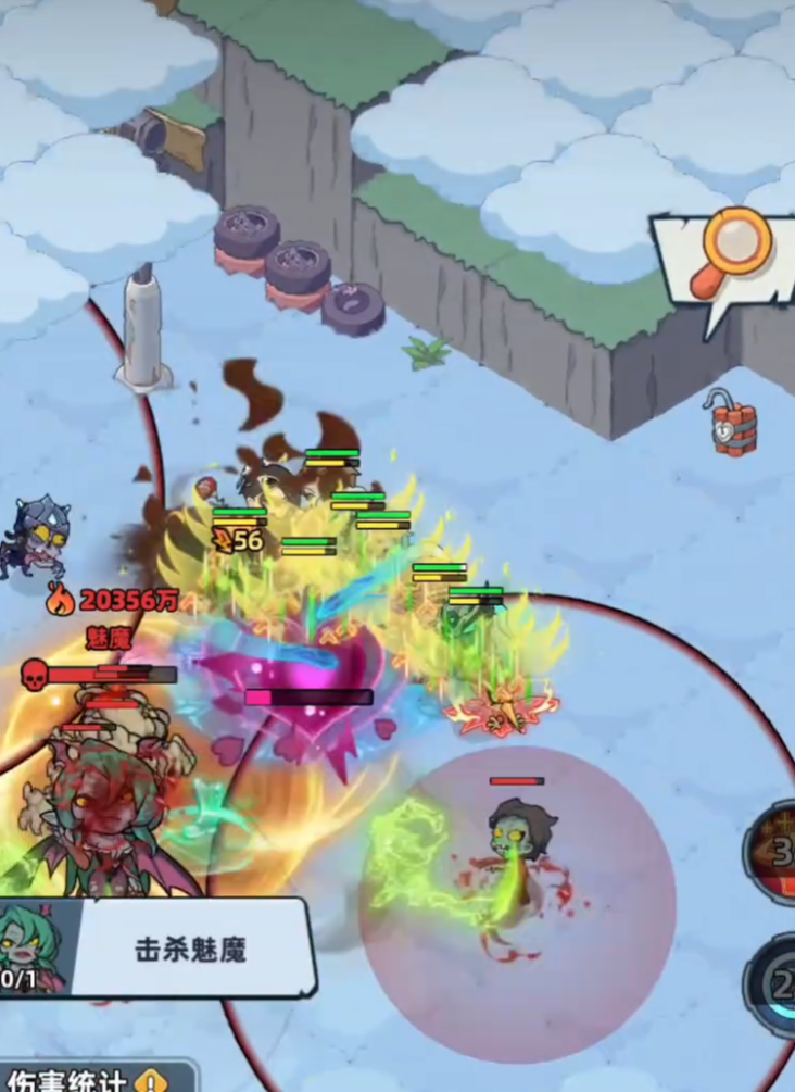 战斗共分三个阶段。第一阶段以护盾循环为核心:魅魔周期性陷入沉睡,但每次苏醒后会释放三道扇形范围技能,地面同步出现红色预警区域,需通过翻滚或横向位移规避;第二阶段转为小怪压制战,召唤的小丧尸单体血量厚、攻击频率高,对队伍整体练度与控场节奏提出较高要求;第三阶段即“全频攻击”登场——全屏泛红预警,但实际伤害并非无死角覆盖,而是存在固定落点区域与短暂判定延迟。此时有两种可靠应对路径:一是利用角色自带的位移技能(如突进、闪现、浮空)主动脱离红色波纹中心;二是提前记忆地图内预设的安全区位置(通常位于场景四角或中央石柱后方),在预警出现后迅速移动至该区域静止等待技能结束。