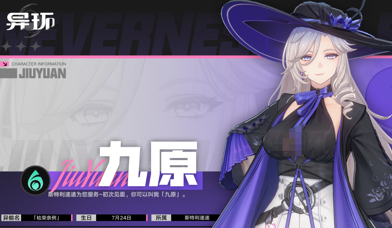 九原定位为高爆发灵属性输出型角色。普通攻击为双枪五段连击,命中过程中可累积最多2颗“玫约子弹”,第五段命中目标后自动缔结“玫约”契约。滞空状态下点击普攻,将在落地瞬间触发下落攻击,造成灵属性伤害,且伤害数值随下落高度线性递增。长按普攻则进入锁定射击模式,若持有子弹则自动消耗并连续射击,优先打击已缔结契约的目标。“情报猎手”技能可位移至目标位置,造成相属性异能伤害,并将敌人强制拉入掌控范围,随后发动多段连击,成功命中后获得4颗自当并追加契约效果。“终局清账”为大范围高速机动技,期间对路径上敌人持续扫射,终结时引发大范围灵属性爆炸伤害,并使所有已缔结“玫约”的目标进入“伤害清算”状态,承受额外结算伤害。