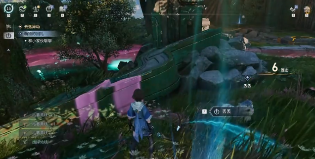 先是传送到古丘城渡石,这是整个流程的起始传送点,位置是比较好的,并不需要绕远路。抵达之后再次打开地图,让系统自动的指引方向,跟着追踪标线走,就可以抵达任务目的地。在抵达目的地之后,先把周围的小怪全部的清理掉,这些怪物的难度并不高,常规的输出就可以迅速的解决。解决完毕之后就可以获取逸事萌物的回礼,这也是触发后续任务的关键。接取到任务之后和场景中的萌物进行两次对话,然后就会触发第一层的机关。
