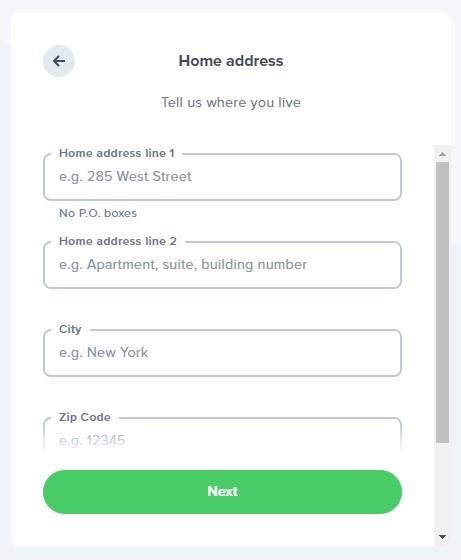 4. 在下一页上,您必须输入您的家庭住址、城市和邮政编码。