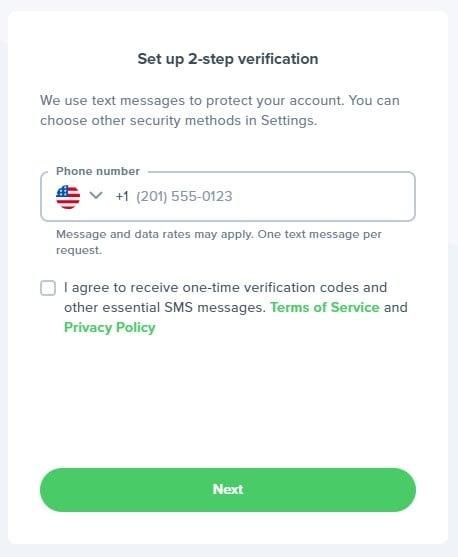 6. 输入您的电话号码以接收验证码。在弹出的屏幕上输入验证码。