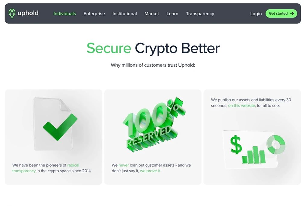 Uphold 加密货币交易所的主要特点