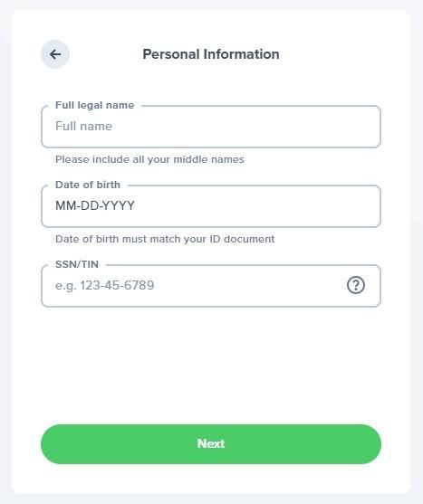 3. 接下来,您必须填写一份包含一些个人详细信息的表格。请提供您的法定全名、出生日期和社会安全号码(适用于美国居民)。