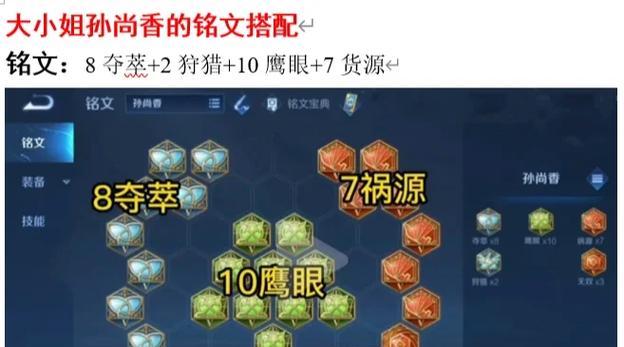 通过合理选择铭文和出装策略,孙尚香可以在游戏中发挥出最大的作用。同时,掌握一些高手技巧和团队配合,可以使她更加强大。希望本文的攻略能帮助广大玩家更好地使用烟雨孙尚香,成为王者荣耀中的霸主!