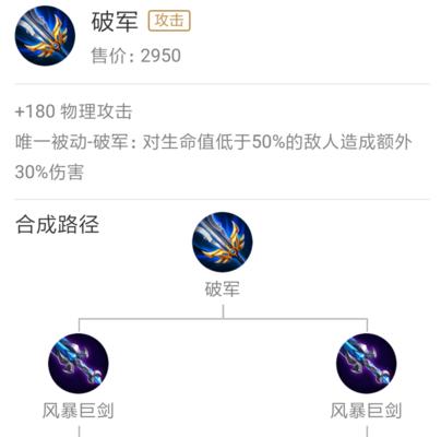 破军是传统刺客的核心装备之一,它能够大幅度提升刺客的物理攻击力和暴击伤害,并且在暴击时会为刺客提供额外的物理穿透效果。