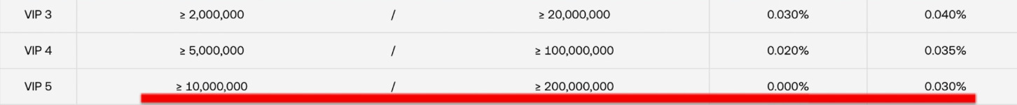 我们继续看一下欧易的,欧易和币安是完全一样的,只不过币安可以使用BNB代扣9折优惠,而欧易你可以购买OKB,当购买200个以上就是和币安一样的了。因此这里也是看大家自己怎么选择,整体对于普通用户而言差距并不大。对于专业的合约操作用户,欧易还是一样的手续费便宜。因此对于专业交易用户来说,还是欧易相对好一点,至少可以节省很多手续费的钱,再往上反而欧易会返现。