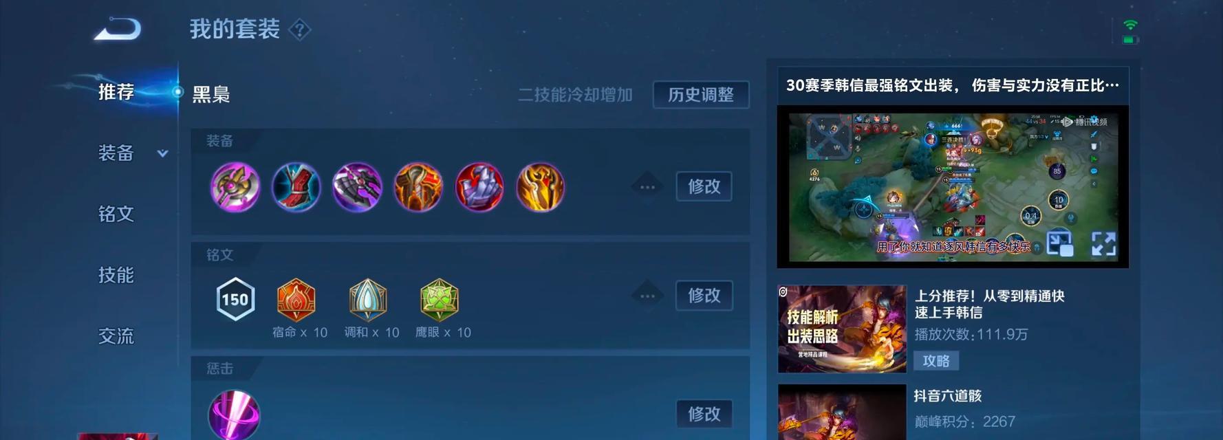 除了移速铭文外,韩信还可以选择一些技能增强类的铭文,如增加技能伤害或减少技能冷却时间,提升他的输出能力。