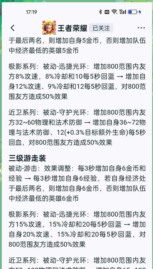 辅助英雄的主要职责是增强队友能力,选择适合的辅助装备可以提高整个团队的实力,本段将介绍一些常见的辅助装备及其使用技巧。