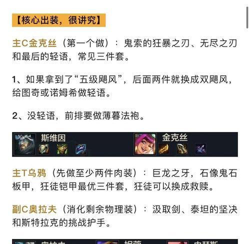 乌鸦的出装路线决定了他在游戏中的作用和效果。我们将为您介绍不同阶段适合乌鸦的出装路线,帮助您更好地发挥乌鸦的优势。