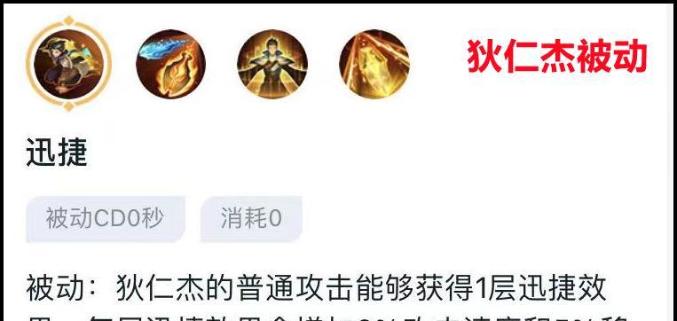 狄仁杰的被动技能“锐眼”可以增加自身的暴击率。选择增加暴击率和攻击速度的铭文可以进一步提升狄仁杰的输出能力。
