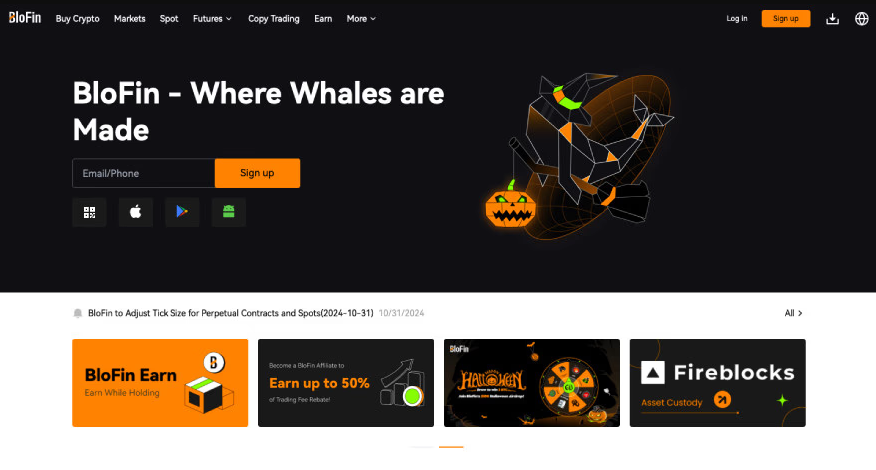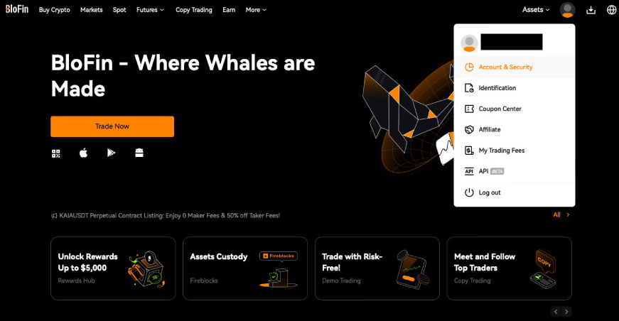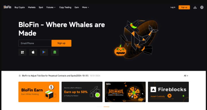 BloFin 的口号 “Where whales are made” 同样可以用来形容这个平台:这家中心化交易所的功能可谓应有尽有。它提供跟单交易和高达 150 倍杠杆且有超过 300 个永续合约支持的期货交易,还有推荐与联盟计划、赚积分小游戏,以及关于加密和区块链技术的课程。