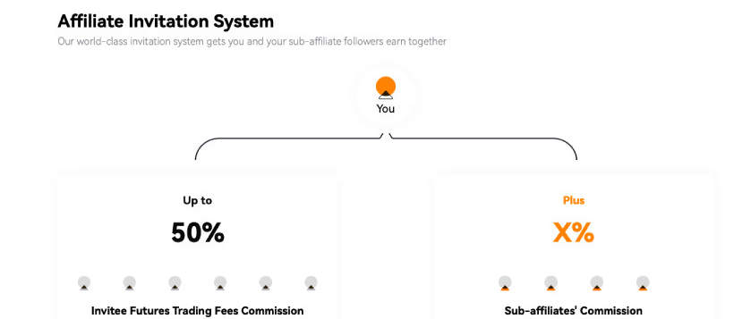 参与者需要在文章、博客、视频或社交媒体上推广 BloFin。关键在于提供注册链接:如果有人点击注册,每笔交易你都能获得最高达 50% 的佣金。以 USDT 形式支付,并以每日每 6 小时为一个周期计算处理。