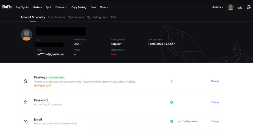 如果你想将 24 小时提现限额提高到 1,000,000 USDT,我强烈建议你完成 BloFin KYC 验证。只需花上几分钟,而且最好注册后立即完成,免得忘记。