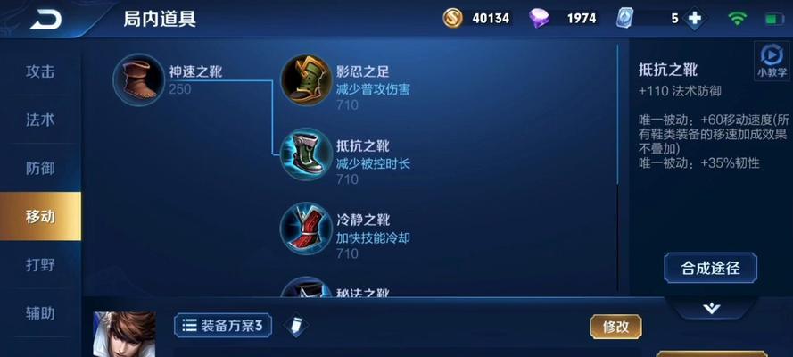7.3面对敌方坦克较多的阵容,选择影忍之足增加生存能力和减少控制效果。