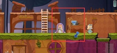 点击画面上方左边的白色物块,然后拖动到右边的墙上,放下并点击它,它会变成一个小门。拖动右边的机关使之旋转,小门就会打开。