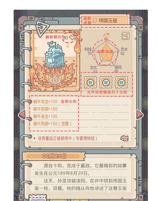 在游戏中,结交大臣朋友可以帮助我们更快地升级,获得更多的资源。但是如何结交大臣却是一大难题。本文将详细介绍以深宫曲为媒介,轻松结交大臣的方法。 一、了解深宫曲的作用 深宫曲是游戏中的特殊道具,可以用来增加自身魅力值,并且在给大臣赠送...