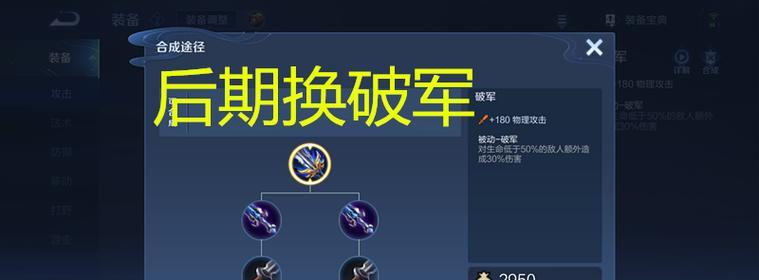 破军是一件非常适合赵云的装备,它能够提供大量的物理攻击力和冷却缩减效果。最重要的是,破军还有一个被动技能,每次普通攻击都能够增加赵云的移动速度,并且可以触发闪现效果,让赵云能够更频繁地使用闪现技能。