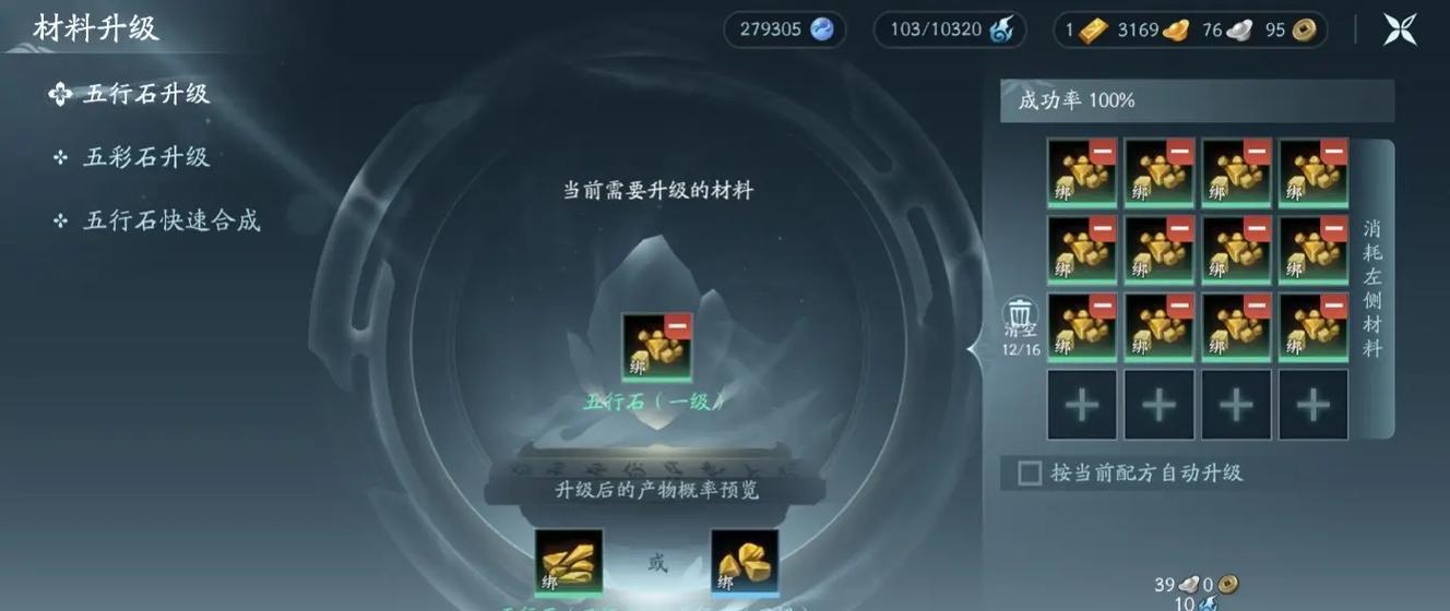 3.石头选择:选择合适的石头进行合成