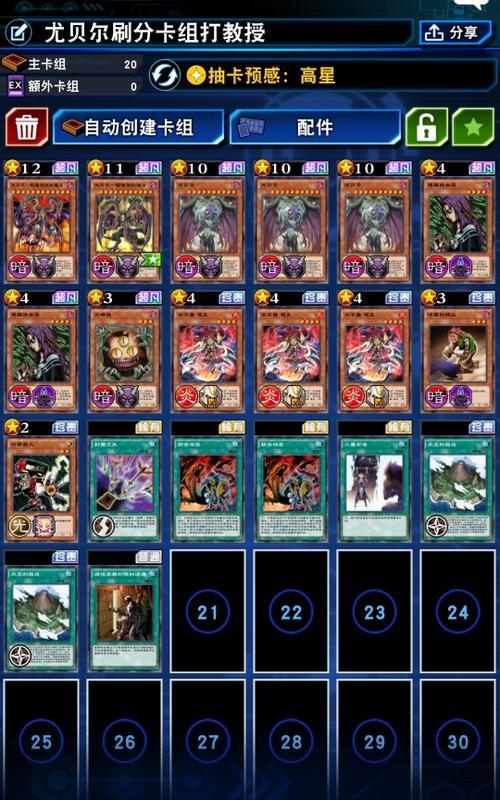 额外牌组是尤贝尔卡组的一个重要部分,其中包括了各种强力的额外怪兽和魔法卡牌。在构建额外牌组时,需要根据实际情况进行选择,并进行合理搭配。